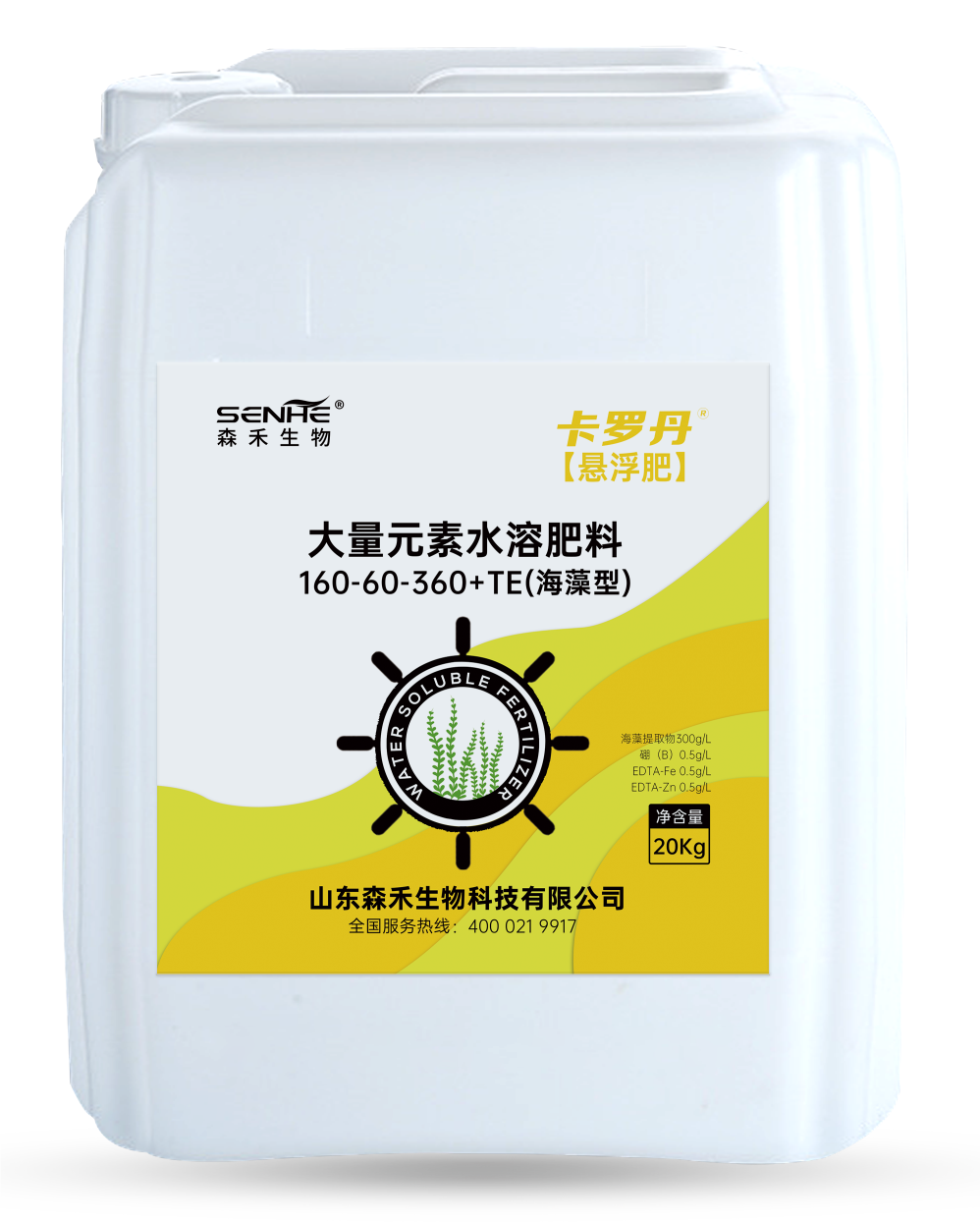 工廠占地5000m2,擁有三條專業生產線。我們選用目前國內優秀的水溶肥生產及灌裝設備,自動化程度高。通過公司技術人員的調試和技術升級,大大提高了工作效率和生產質量,新型設備年產值可達1萬噸以上。 森禾